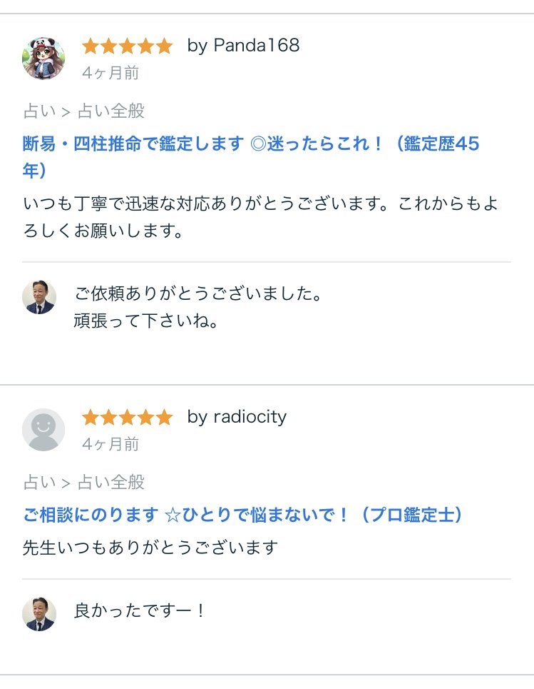 仁ノ助先生の鑑定を受けられた方の