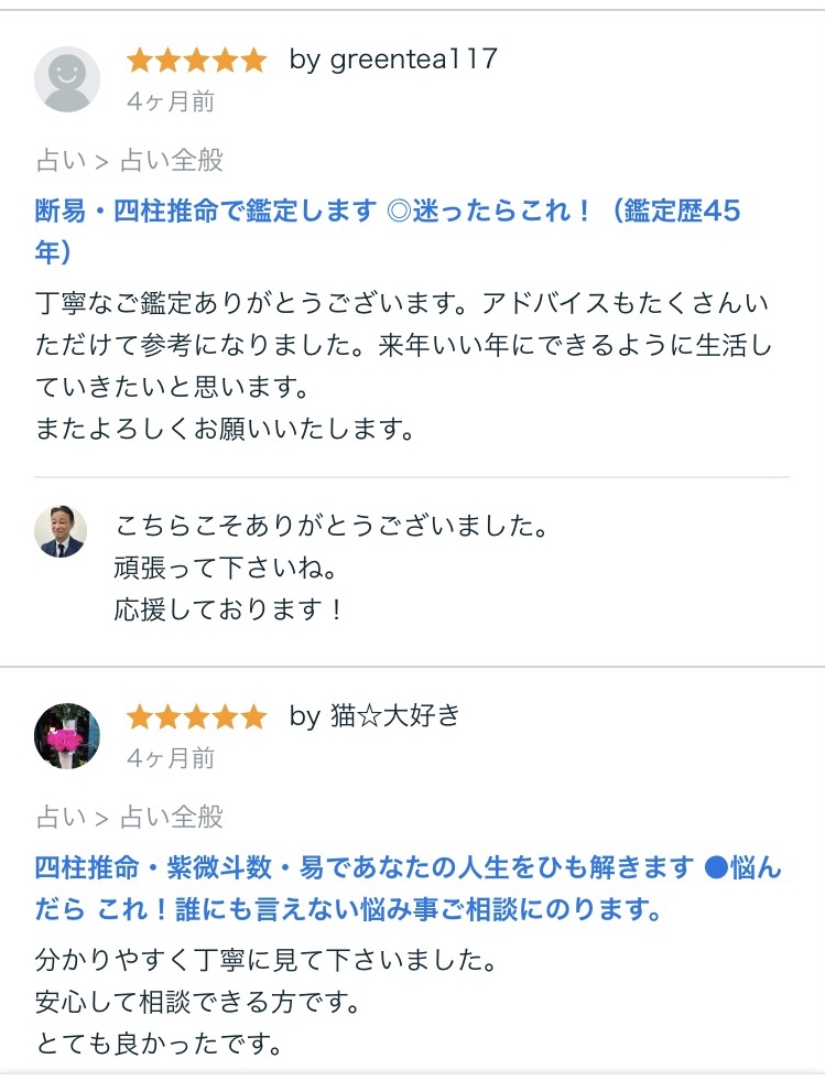 仁ノ助先生の鑑定を受けられた方の